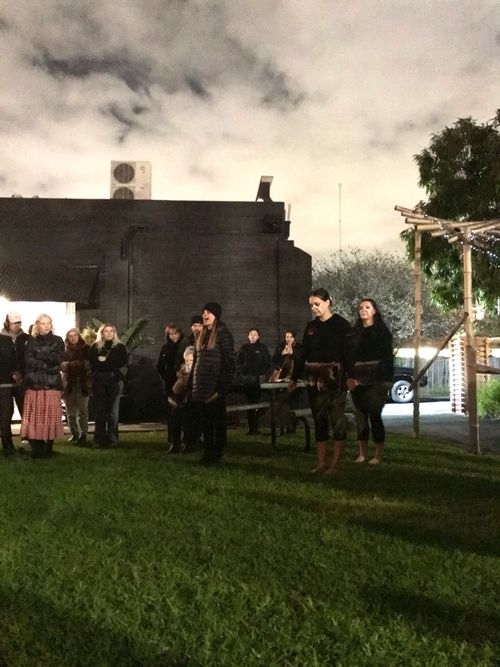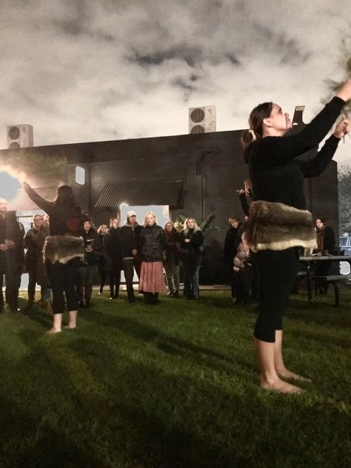 Wurundjeri-Willam Leader and Traditional Custodian, Mandy Nicholson, and daughters, the Djirri Djirri dancers, filled the space with language and dance reverberating and warming the spirits.